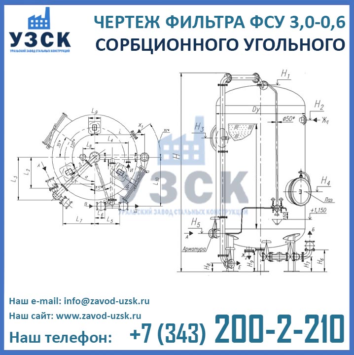 Стоимость фильтров ФСУ-3,0-0,6 напрямую зависит от цен на сырье. Изготовление сорбционных фильтров осуществляется из листовой стали, цены на которую постоянно варьируются из-за сложившейся на рынке металлопроката нестабильной ситуации. В связи с этим мы рекомендуем уточнить актуальные цены фильтров ФСУ-3.0 Ру 0.6 непосредственно перед заказом. Для оформления заказа или расчета стоимости угольного фильтра 3.0-0.6 свяжитесь с менеджерами Уральского завода стальных конструкций по координатам из раздела «Контакты». Мы является производителем фильтров сорбционных угольных и осуществляем поставки оборудования во все регионы России, Казахстана, Армении, Киргизии и Белоруссии.