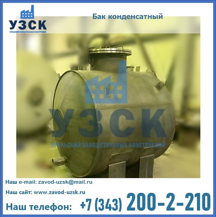 Многие заказчики стараются конденсатные баки купить по выгодной цене в компании «УЗСК» в Сызрани. Причин несколько. Производитель поставляет емкости с полным комплектом лестниц, площадок обслуживания. Бак после гидравлических испытаний покрывают специальной внутренней и наружной краской, накладывают теплоизоляцию или наваривают крепеж для навески минматов. Условия теплоизоляции согласуются с заказчиком.