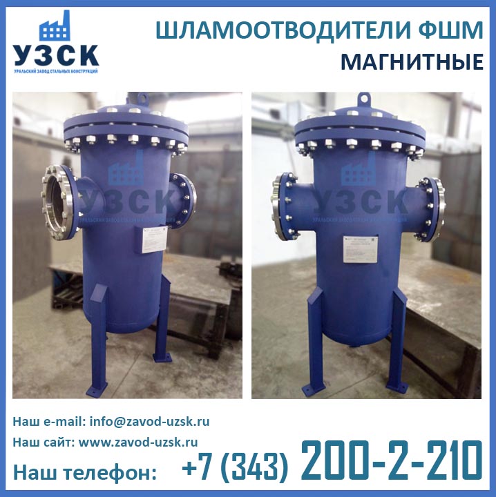 Являясь непосредственным изготовителем фильтров магнитных ФШМ, Уральский завод стальных конструкций предлагает самые низкие цены на шламоотделители ФШМ Ду250 в Сызрани. Производство магнитных шламоотводителей осуществляется в самые короткие сроки специалистами сварочного производства НАКС по аттестованной технологии сварки при помощи сварочного оборудования, аттестованного Национальным агентством контроля сварки.