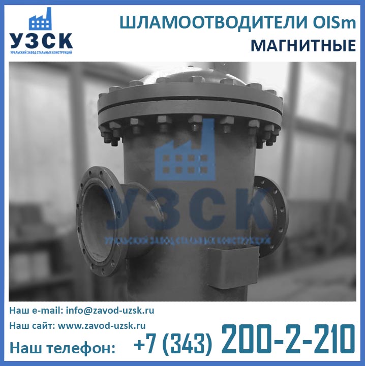 Производителем шламоотводителей является Уральский завод стальных конструкций (УЗСК), оборудованный собственной лабораторией НК, аттестованной на все виды неразрушающего контроля. Изготовление магнитных фильтров OISm на нашем заводе осуществляется при участии сварщиков, имеющих аттестационное удостоверение НАКС (Национальное агентство контроля сварки); по технологии сварки НАКС; на оборудовании, прошедшем аттестацию НАКС. По готовности МШО OISm 300/100 подвергается гидравлическим испытаниям пробным давлением на аттестованном гидростенде завода.